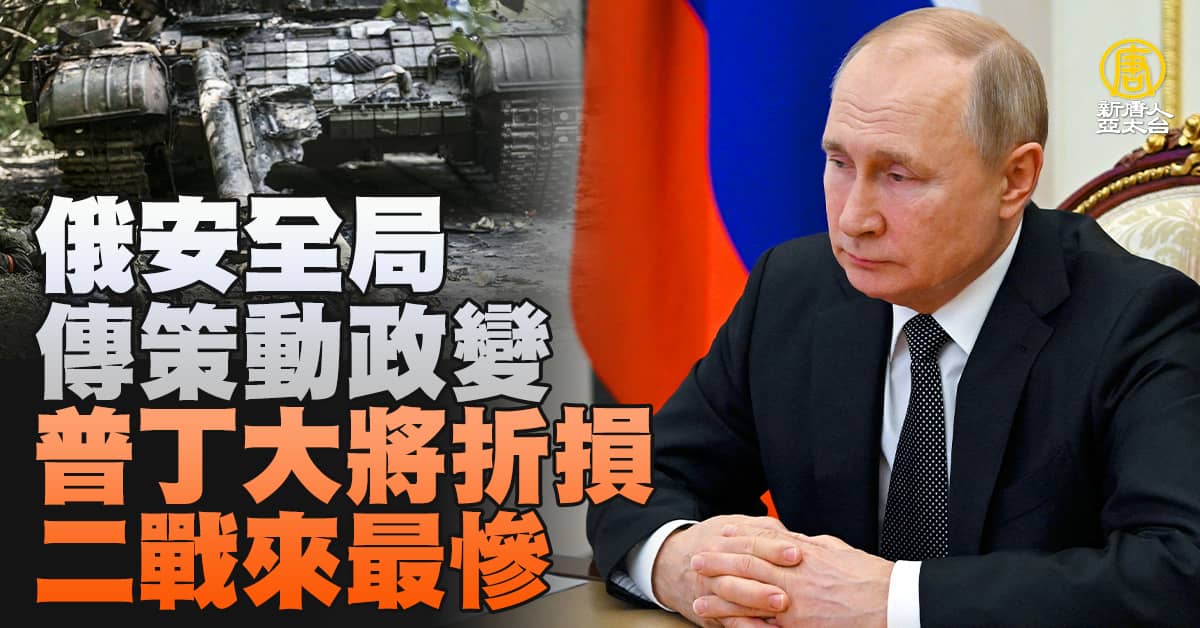 【新唐人亞太台 2022 年 03 月 24 日訊】俄羅斯入侵烏克蘭一個月以來,已經損失15位軍事高級指揮官,堪稱二戰以來最慘紀錄。與此同時,俄羅斯一眾高官集體「失蹤」,引發各方揣測。英國「泰晤士報」也傳出,俄國安全局策畫推翻普丁的可能正在升高,美國《新聞週刊》更報導,連接替總統的人選都已經有腹案,就是俄羅斯聯邦安全局(FSB)局長波特尼科夫。