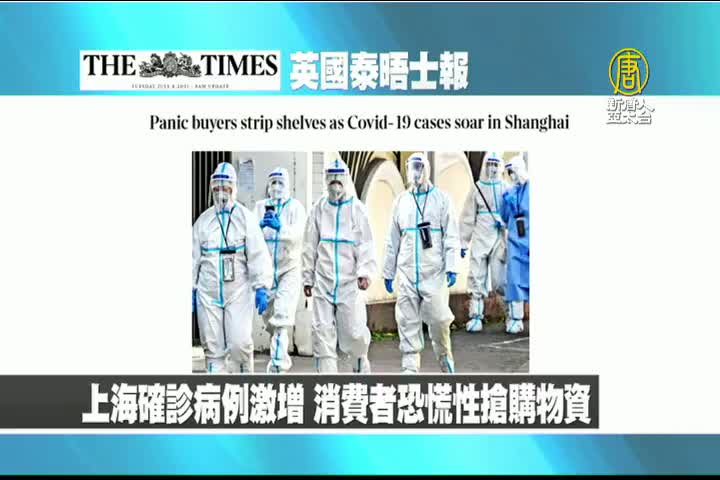 【新唐人亞太台 2022 年 03 月 25 日訊】接著來看到英國泰晤士報導:上海確診病例激增,消費者恐慌性搶購物資。