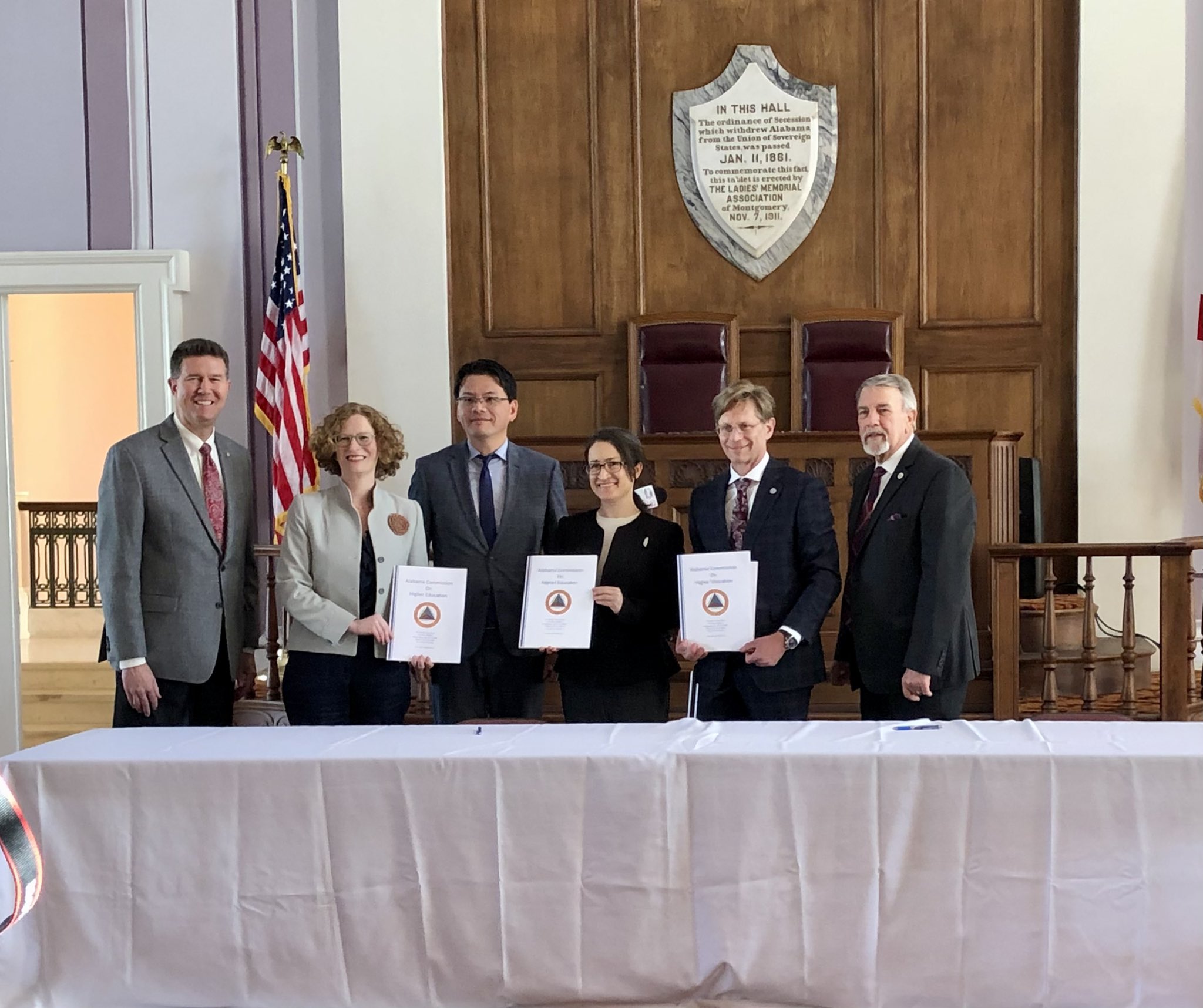 今天簽署的教育合作備忘錄是由阿拉巴馬州高等教育委員會主任普賽爾(Jim Purcell)與教育廳長馬基(Eric Mackey)共同簽署,蕭美琴、麥卡奇昂、阿拉巴馬州州務卿梅瑞爾(John Merrill)、聯邦參議員特本維爾(Tommy Tuberville)、聯邦眾議員阿德霍爾特(Robert Aderholt)與摩爾(Barry Moore)等人見證。