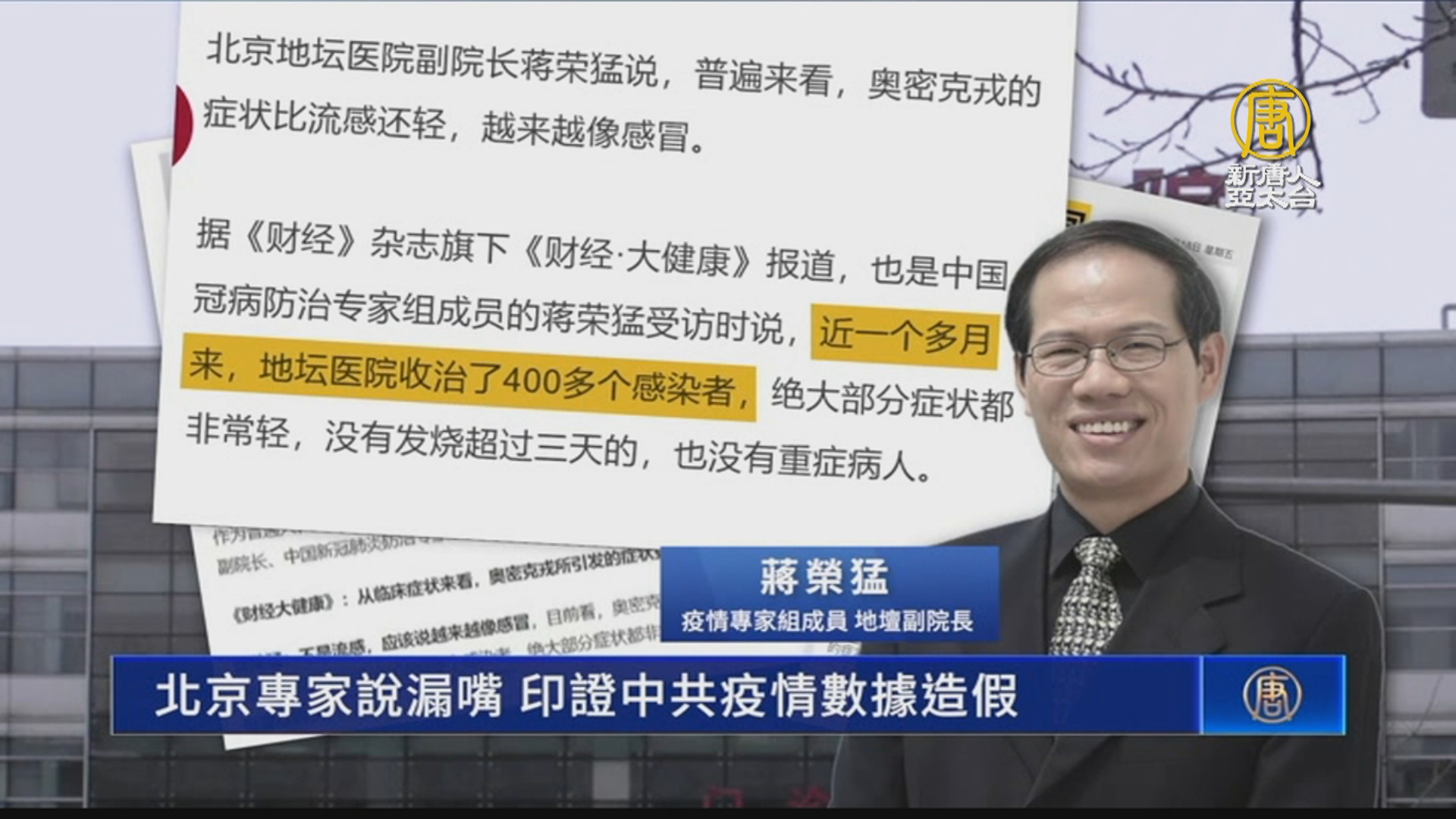 3月18日,多家中國大陸媒體,都轉載了中共疫情專家組成員、北京地壇醫院副院長蔣榮猛的採訪報導,他表示,近一個多月來,北京地壇醫院收治了400多個感染者,但這一數據,遠超北京當局通報的數據。從3月初至今,北京當局的數據,每天都是個位數,只有2日和5日,超過10例。