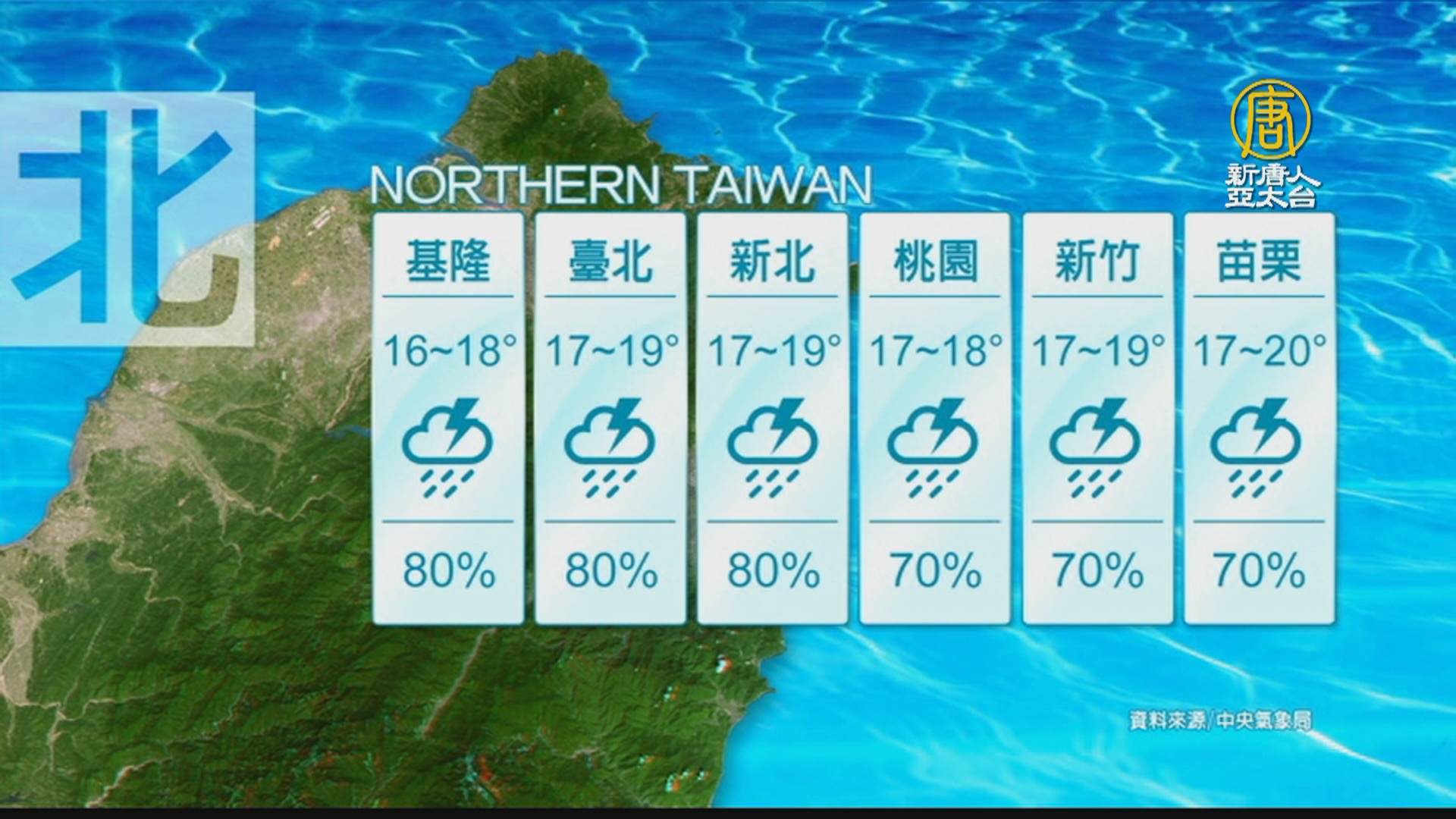 2022-12-12 08:13:36歡迎您收看12月12日的早安新唐人,我是唐潔安,先來帶您關心天氣。本週一波波更強冷空氣南下,觀眾朋友要持續多加衣物保暖,週三(14日),先是東北季風增強。週六(17日),入冬首波大陸冷氣團南下,中部以北低溫下探13度,預估週六,清晨北部三千公尺以上高山,有機會迎來初雪。帶您一起來看到國際媒體重要訊息。