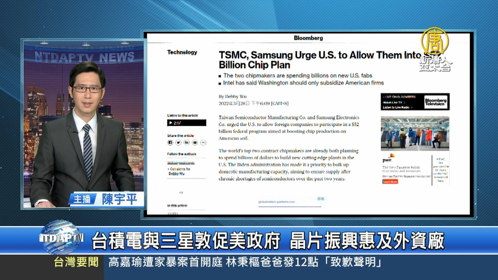 【新唐人亞太台 2022 年 03 月 28 日訊】拜登政府推動半導體產業,計畫在5年內斥資520億美元,來大幅提升美國半導體晶片的生產及研究。彭博社28日報導,全球最大的兩大晶圓代工廠台積電和三星電子,已經向美國政府表示,希望外國廠商在美國設立晶片工廠時,也能夠獲得美方為鼓勵晶片生產本土化,而推出的獎勵優惠。