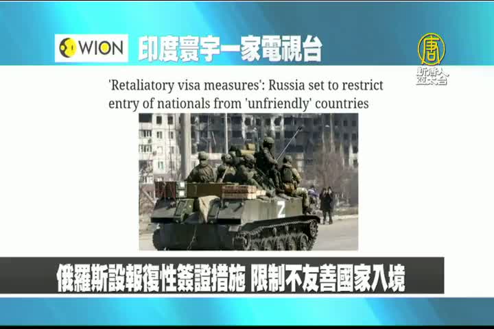 【新唐人亞太台 2022 年 03 月 29 日訊】最後是印度寰宇一家電視台報導:俄羅斯外長拉夫羅夫表示,普丁政府正準備對烏克蘭戰爭中不友善國家限制入境。