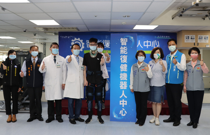 大千綜合醫院智能復健機器人中心今天揭牌,院方引進「鏡像手」手部外骨骼機器人及「啟而走」下肢外骨骼機器人,運用科技優勢,提供復健病人多元治療服務。