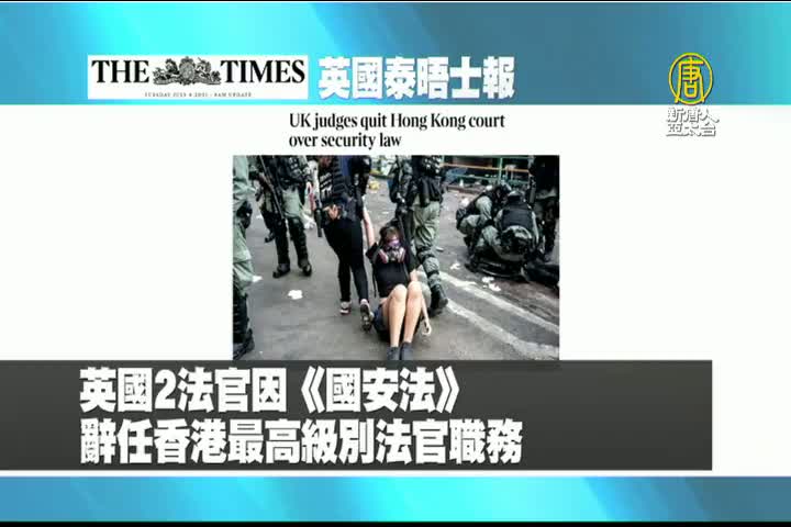 【新唐人亞太台 2022 年 03 月 31 日訊】來看到英國泰晤士報報導:英國外交部表示,由於香港國安法嚴重違反英中聯合聲明,英國2名法官辭去香港終審法院法官職務。