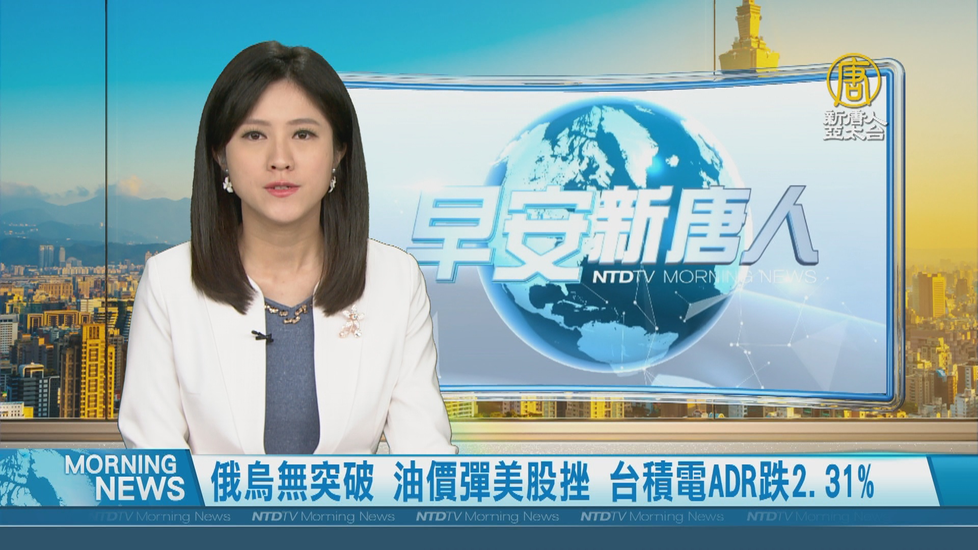 【新唐人亞太台 2022 年 03 月 31 日訊】再來關注市場最新動態,俄羅斯與烏克蘭的和談未有突破跡象,加上美國聯準會可能為遏制通膨而激烈升息,進而阻礙經濟成長,美國股市3大指數週三收跌,國際油價回彈。道瓊下跌65點,科技股那斯達克下跌177點,台積電ADR跌2.29%。