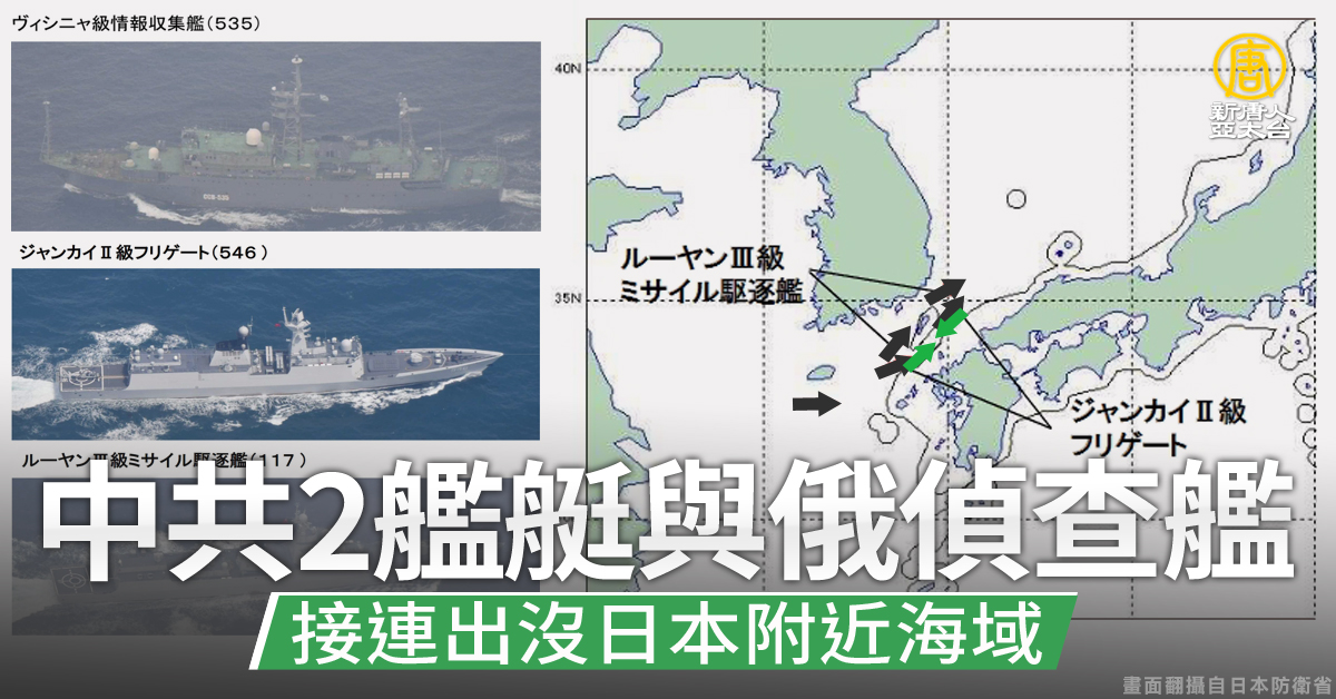 中共2艦艇與俄偵查艦 接連出沒日本附近海域