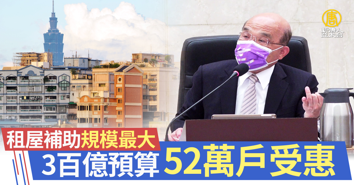 【新唐人亞太台 2022 年 03 月 31 日訊】歡迎回來。行政院會今天(31日)宣布擴大租屋補助,從原本預算57億、12萬戶,大幅提到3百億、52萬戶受惠,原有補助對象金額也再增加。