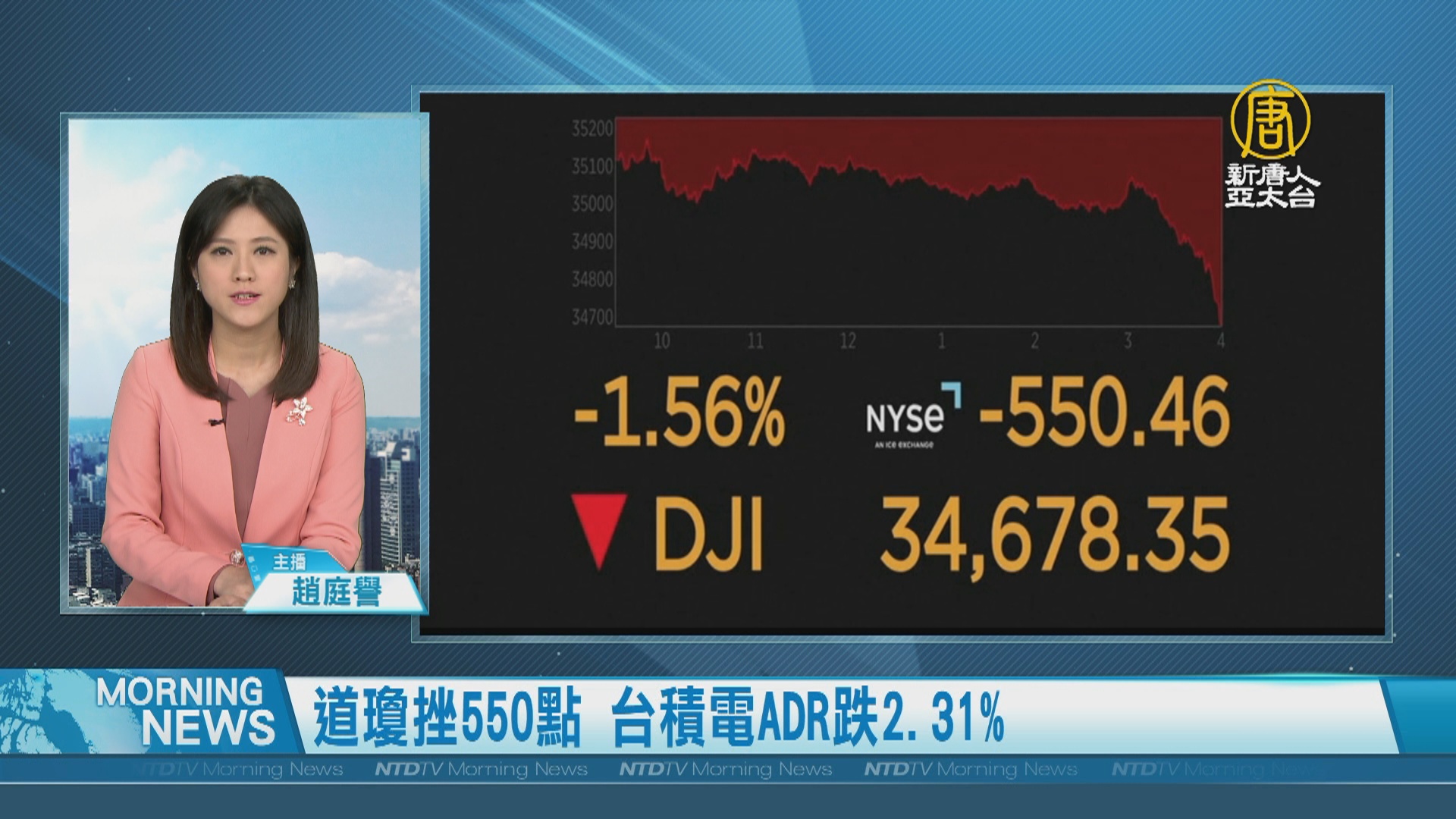 【新唐人亞太台 2022 年 04 月 01 日訊】市場仍持續憂心俄羅斯入侵烏克蘭的戰事與物價上漲的效應,美股3大指數創下2020年疫情爆發以來最糟單季表現。週四,道瓊工業指數下挫550點,標普500跌72點。科技股那斯達克下跌221點。台積電ADR則下跌2.31%。