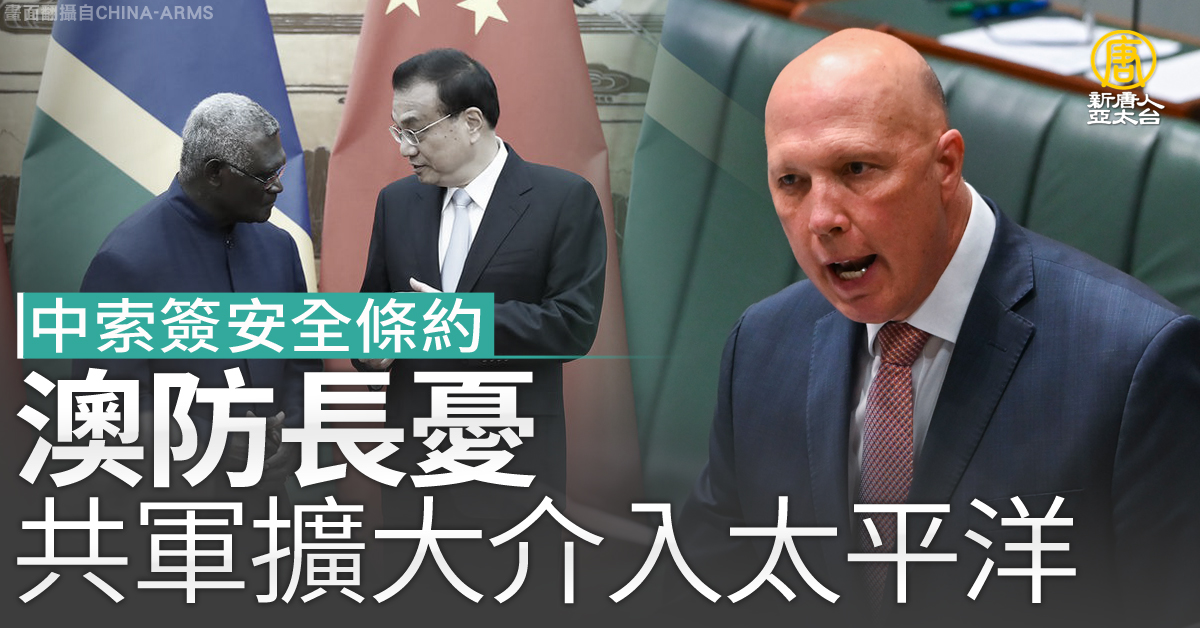 【新唐人亞太台 2022 年 04 月 01 日訊】31日,中共發布聲明,已經與索羅門群島政府簽訂安全合作框架協議。上週一份外洩的協議草案指出,中共武警、軍隊、武器設備,甚至是海軍軍艦等中共的軍事力量將被允許駐紮在索羅門群島,引發紐西蘭、澳洲和美國的疑慮。澳洲防長杜登今天指出,須要看穿中共的意圖,它們不只是向索國提供警員訓練,而是擴張在太平洋地區的軍事力量。