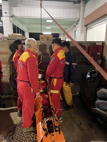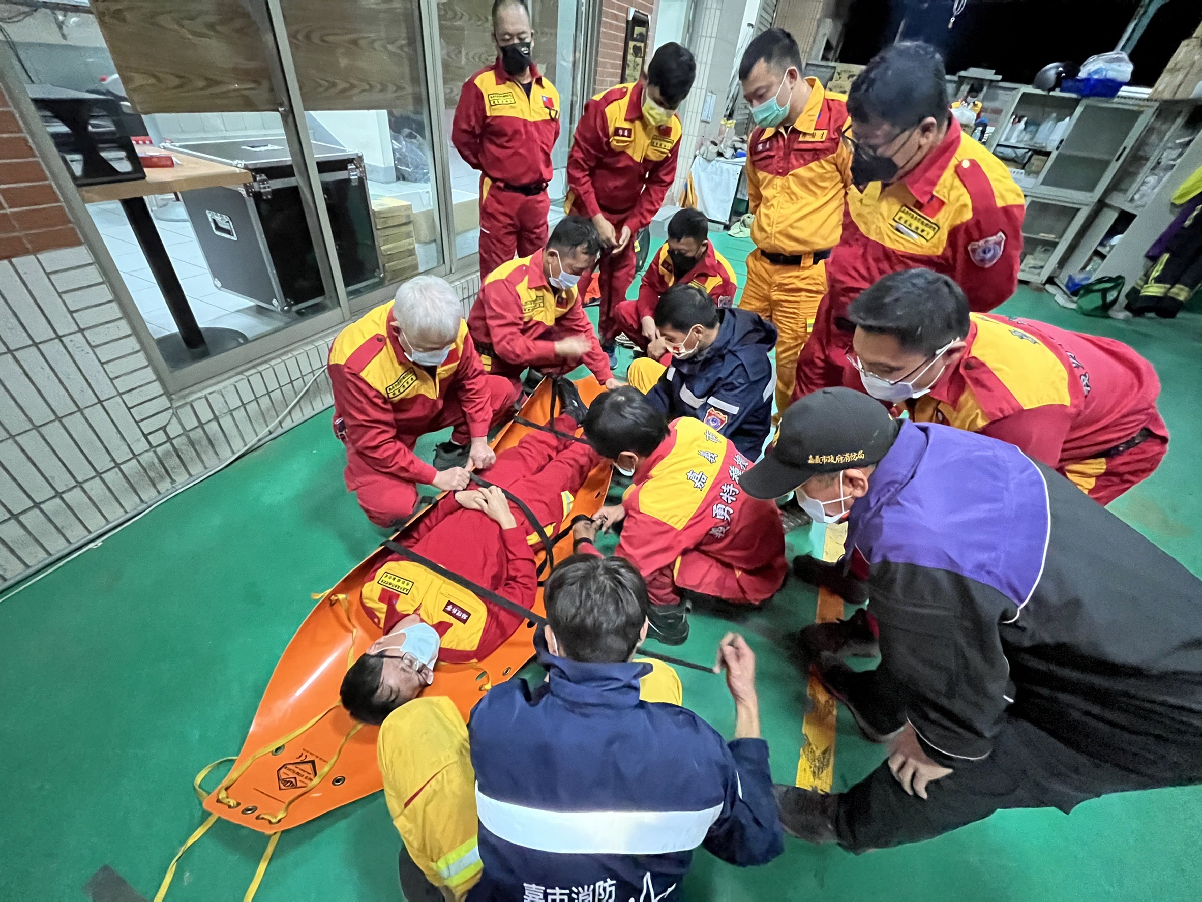 嘉義市義勇特種搜救隊分隊長莊全立表示,定期訓練主要目的,期藉此訓練提升各特種搜救人員,對於實際救災的熟稔性與默契,有效提升山域救援時效及強化搜救作業效率。此次特別聘請嘉義市消防局教官黃智瑋,教授SkED軟式擔架搭載受困者,救助人員後送之訓練。