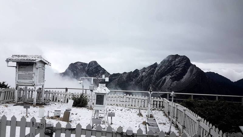 中央氣象局3日表示,玉山氣象站於下午2時30分下雪,至下午3時20分雪停,積雪2公分。(圖/氣象局提供)