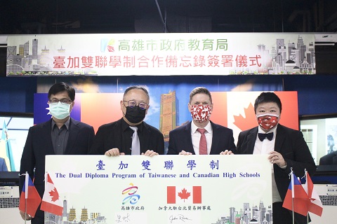 在本次的合作簽署後,高雄市的高中生有機會在台灣修習完整課程,取得台灣及加拿大雙文憑,同時透過線上的方式由國外高中教師全英語教授課程,讓學生沉浸在雙語環境中。未來疫情達到解封許可,也可以選擇暑假期間至加拿大參與實體課程,通過檢核後可取得台、加兩張高中畢業證書,有助於提升未來就學就業競爭力。