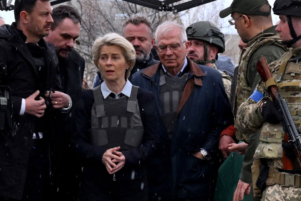 歐盟執委會主席范德賴恩訪問基輔時說,俄羅斯因為面臨西方更加嚴厲的制裁,將走向「衰敗」,而烏克蘭則有通往「歐洲的未來」。(圖/GettyImages)
