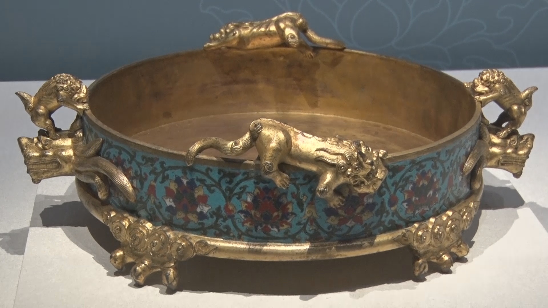 策展人國立故宮博物院器物處助理研究員 胡櫨文:「好像不同故宮平常展出的文物,它顏色很多,而且它的這個金光閃閃,像這種多彩的掐絲琺瑯已經20幾年沒有展出了。」