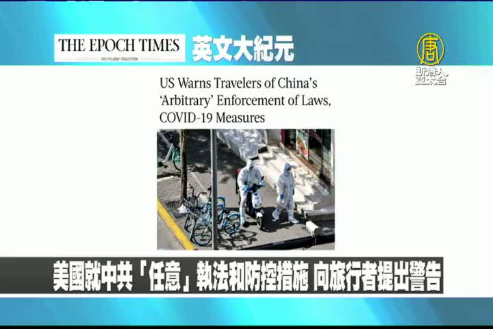 【新唐人亞太台 2022 年 04 月 11 日訊】首先來看到美國大紀元英文版報導:美國就中共「任意」執法和防控措施,向旅行者提出警告。