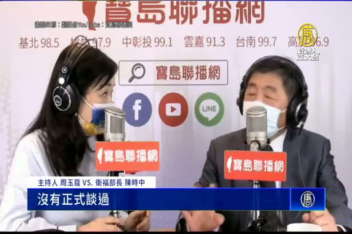 【新唐人亞太台 2022 年 04 月 12 日訊】台灣11月26日將舉行9合1選舉,今天(12日)上午,衛福部長陳時中接受廣播節目專訪,被主持人周玉蔻問及,是否有與黨內的人談過選台北市長,以及是否和蔡英文總統,談過選舉議題。