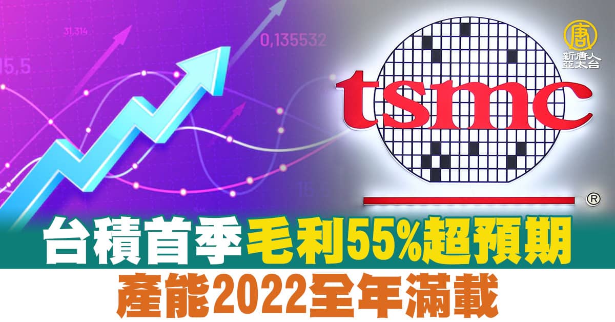 台積首季毛利55%超預期 產能2022全年滿載