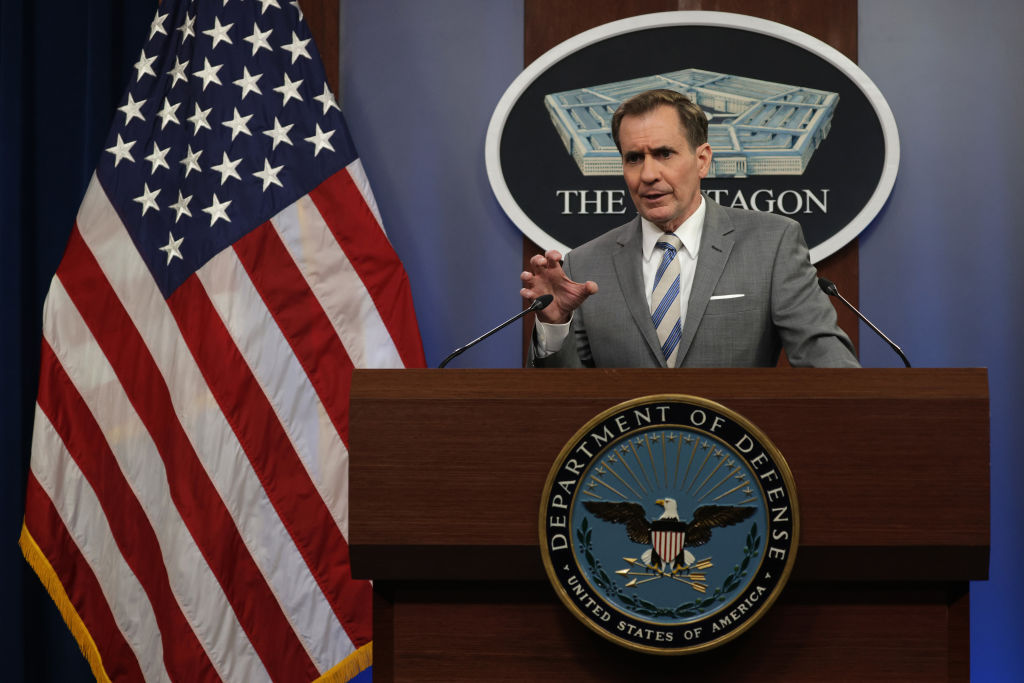 美五角大廈宣布,被批准的一批軍援清單包括11架Mi-17直升機、300架彈簧刀(Switchblade)式無人機、18門155毫米榴彈砲及4萬發砲彈,以及化學戰防護裝具。圖為美國防部發言人柯比(John Kirby)資料照。(圖/GettyImages)
