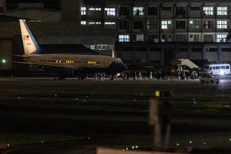 美國聯邦參議院外交委員會主席孟南德茲(Robert Menendez,D-NJ)等跨黨派參眾議員14日搭乘C-40C行政專機抵台訪問,晚間順利降落松山機場。(圖/中央社)