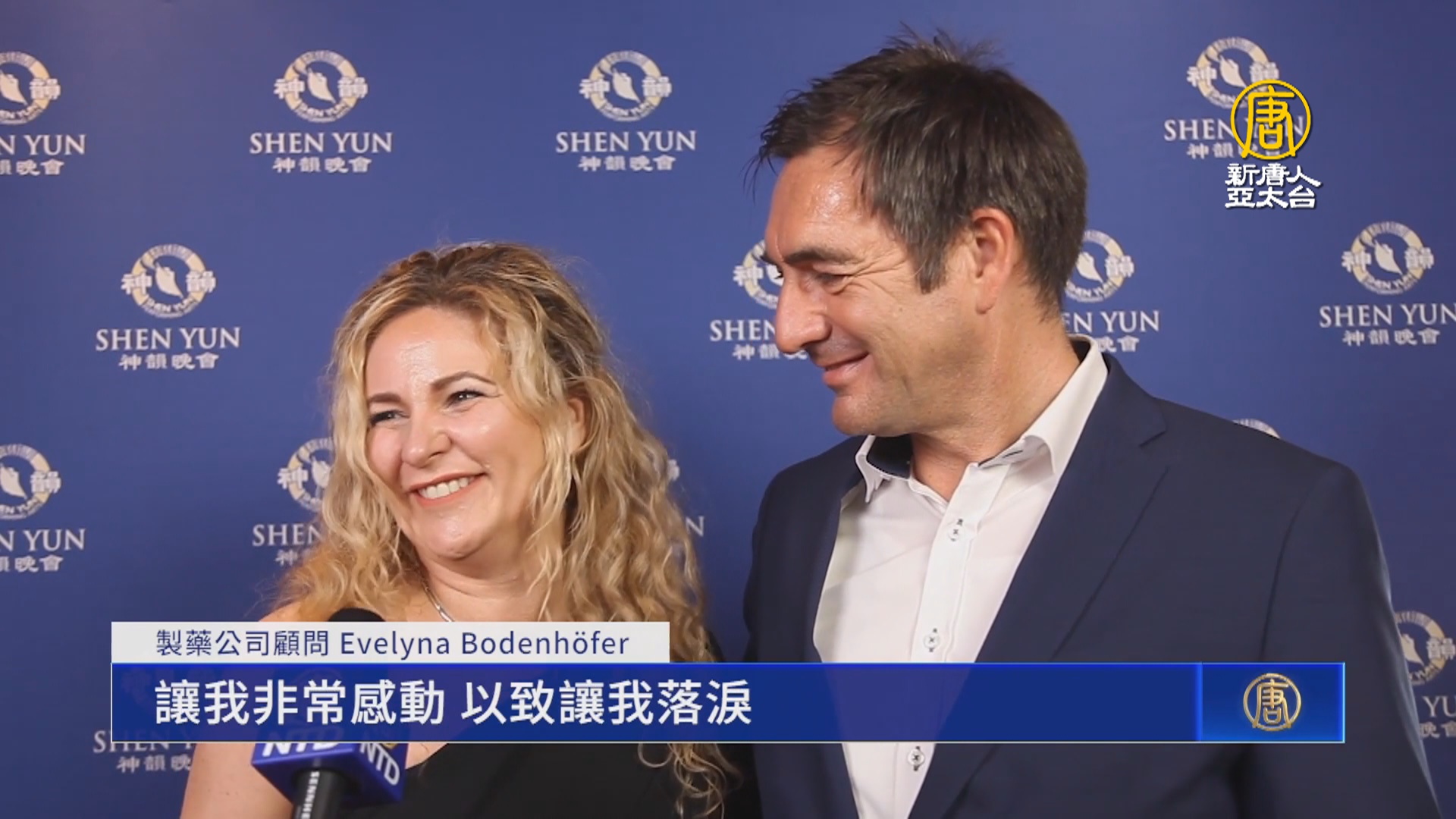 製藥公司顧問 Evelyna Bodenhofer:「我覺得那個獨唱節目非常好,歌詞中唱到了神佛,說無神論者會走向迷失。我覺得這很有意義。歌詞裡還唱到天堂,還有創世主,他護佑天下所有人。我覺得這(歌詞)真的非常好,唱得也非常出色。還有背景天幕,整個動態效果,也令人難忘。舞台上演繹的故事都說到人的心坎裡去了,真的打動人心。簡直太美妙了,非常感人。」