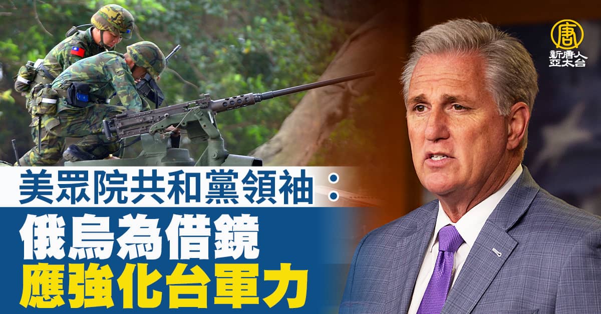 【新唐人亞太台 2022 年 04 月 18 日訊】美國聯邦眾議院共和黨領袖麥卡錫今天表示,俄羅斯入侵烏克蘭應該成為中國可能入侵台灣的重要一課,他呼籲美國總統拜登應盡快採取行動強化台灣軍力,以便更好自我防衛。