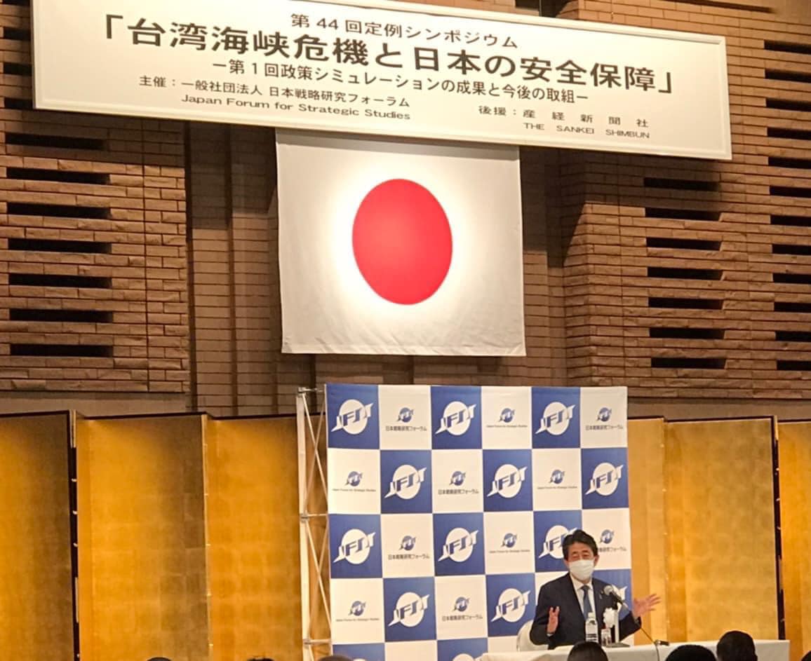 日本戰略研究論壇(JFSS)21日在東京舉辦一場以「台灣海峽危機與日本的安全保障」為題的演講討論會,台灣駐日代表謝長廷、日本前首相安倍晉三受邀主講。(圖/翻攝自謝長廷臉書)