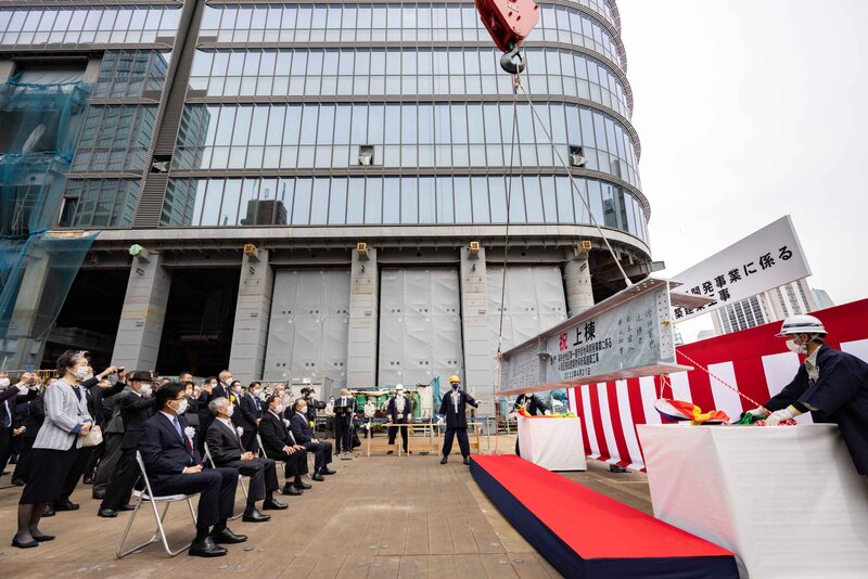 由森大廈公司及日本郵政公司參與規劃、虎之門.麻布台地區市街地再開發組合(都更公會,理事長為曲谷健一)推動的「虎之門.麻布台計畫(Project)A街區」建案從2019年8月開始由清水建設公司施工,昨天舉行日本神道教上梁儀式。