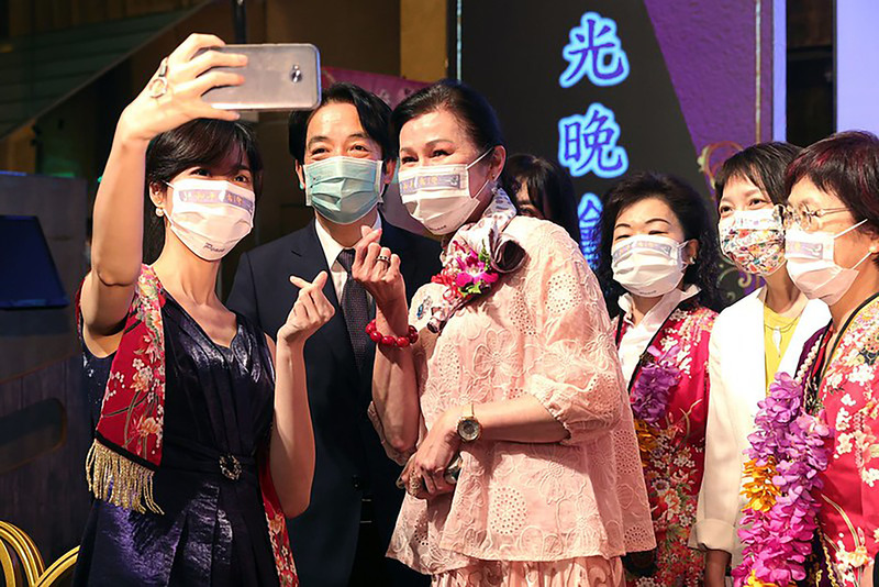 副總統賴清德(左2)22日晚間出席「台灣國際職業婦女協會大台北分會2022年授證及燭光晚會」,以「後疫情時代的經濟發展」為題進行演講,並與在場會員合照。(圖/總統府提供)