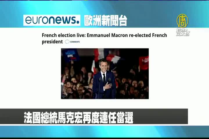 【新唐人亞太台 2022 年 04 月 25 日訊】來看到歐洲新聞台報導:周日,法國總統馬克宏以58%的得票率再次當選,極右派候選人雷朋則以得票率42%落敗。