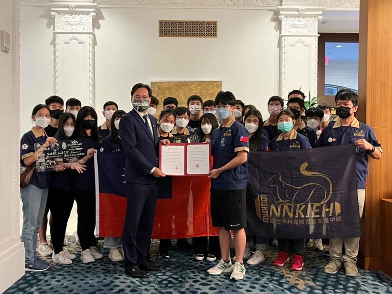 台灣駐美國休士頓辦事處25日表示,2022年FIRST機器人世界冠軍年度大賽已圓滿落幕,來自台灣的7個機器人團隊表現亮眼,也獲得總統蔡英文、副總統賴清德賀電。 (圖/駐休士頓辦事處提供)