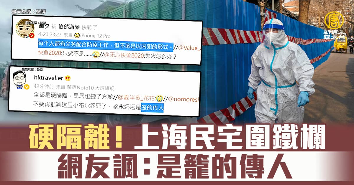 【新唐人亞太台 2022 年 04 月 25 日訊】來看到,上海防疫衍伸出各種民生、醫療問題。微博有網友透露,被帶進方艙隔離,環境「連坐牢都不如」。因為方艙空間已經不夠用,官方甚至從外縣市運來鐵柵欄,將居民圍困在民宅裡,引起民怨。有民眾問執行封鎖的人員,萬一民宅「發生火災怎麼辦」,被冷回,「真有火災了,就算沒圍欄你們一個也出不來」。中共防疫態度引起網友批評說,「上海發生的事情,任何城市都會發生,但來不及發出聲音就被消滅了」、「每個人都有義務配合防疫,但不該是以囚犯的形式」、「硬隔離讓民居變成了方艙」,甚至有網友諷刺表示,民眾「永永遠遠是籠的傳人」。