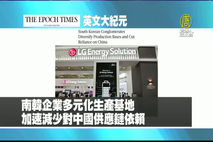 【新唐人亞太台 2022 年 04 月 27 日訊】首先來看到美國大紀元英文版報導:面對原物料上漲和物流不順暢,南韓多家主要企業多元化生產基地,加速減少對中國供應鏈的依賴。