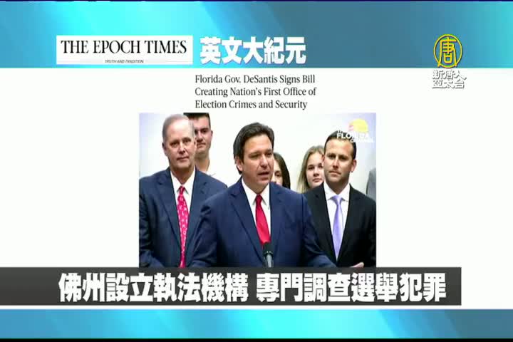 【新唐人亞太台 2022 年 04 月 28 日訊】首先來看到美國大紀元英文版報導:美國佛州州長「德桑蒂斯」25日簽署法案,在州務廳下設立了選舉犯罪和安全辦公室,專門追查選舉欺詐和其它選舉犯罪,是全美首創。