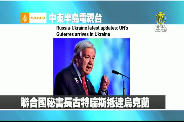 【新唐人亞太台 2022 年 04 月 28 日訊】來看到半島電視台:在與普丁會面完之後,聯合國秘書長古特瑞斯抵達烏克蘭首都基輔。