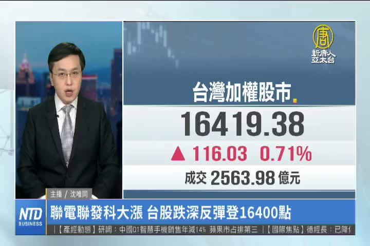 聯電聯發科大漲 台股跌深反彈登16400點