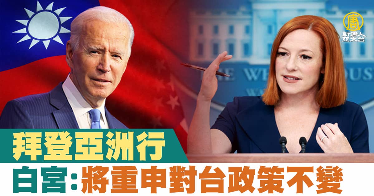 拜登亞洲行 白宮:將重申對台政策不變