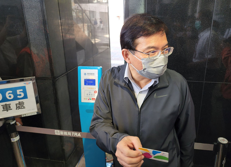 因應台鐵5月1日停駛造成的衝擊,交通部長王國材(圖) 29日下午南下視察疏運措施,並持悠遊卡體驗遊覽車類火車方式接駁。(圖/中央社)