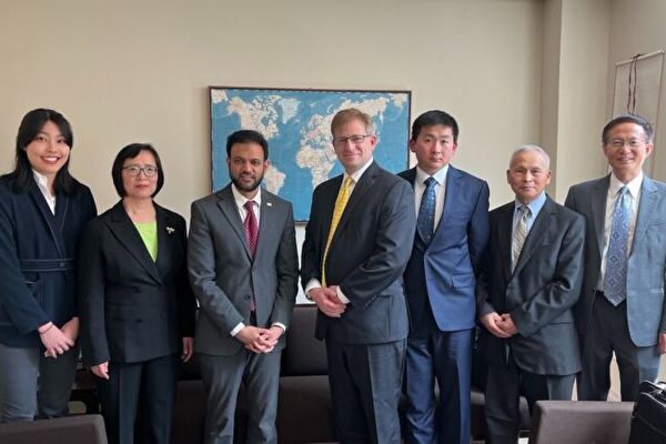 2022年4月25日,美國國際宗教自由大使拉沙德‧侯賽因在華盛頓會見了法輪功修煉團體的代表。(明慧網)