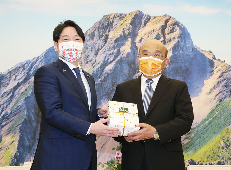 行政院長蘇貞昌(右)4日在行政院接見日本自民黨青年局長小倉將信(左)所率訪團,他致詞時感謝自民黨青年局長年推動台日關係,除是增進兩國關係的重要窗口,也是長年堅定友誼的支持者。(圖/中央社)