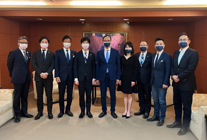 國民黨主席朱立倫(中)5日會見日本自民黨青年局訪問團時表示,中華民國與日本在各方面的合作十分密切,相信這次訪團來訪將鞏固兩國友好情誼。(圖/國民黨提供)