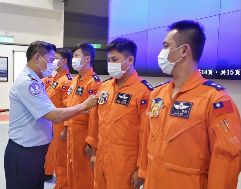 空軍司令部6日表示,副司令孫連勝中將(左前)日 前赴台東志航基地主持第一梯次勇鷹機教官換訓開訓典禮。(圖/空軍提供)