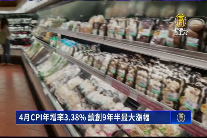 【新唐人亞太台 2022 年 05 月 06 日訊】主計總處今天(6日)公布4月消費者物價指數(CPI)年增率連2月突破3%,漲幅擴大至3.38%,續創9年半最大漲幅,顯示台灣通膨壓力依舊居高不下。主計總處統計,扣除蔬果、能源後的核心CPI年增率也達2.53%,漲幅較上月擴大。另外,4月民生重要物資平均CPI年增率,也突破4%、升抵4.41%;民眾採買民生用品時,很可能對於荷包變瘦更有感。
