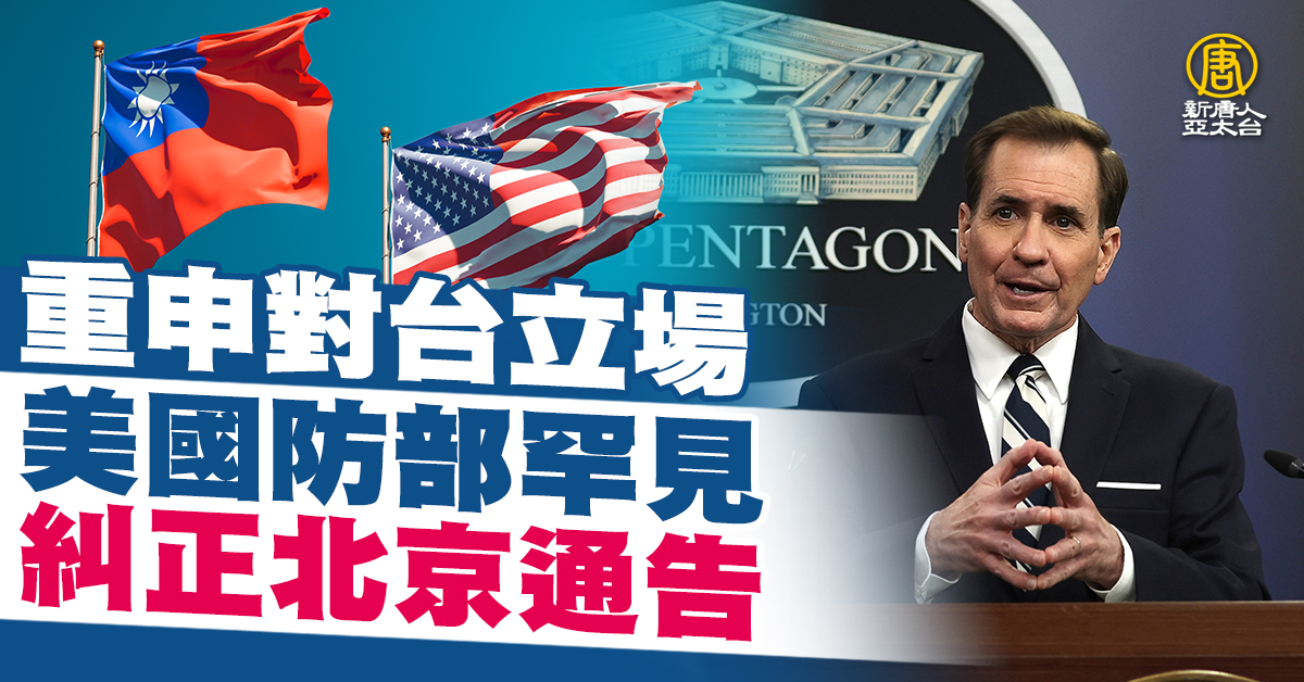 【新唐人亞太台 2022 年 05 月 07 日訊】美國國防部發言人週四(5月5日)罕見重申美國堅持自己的「一中政策」,並稱4月20日的美中防長通話之中方通告出錯。
