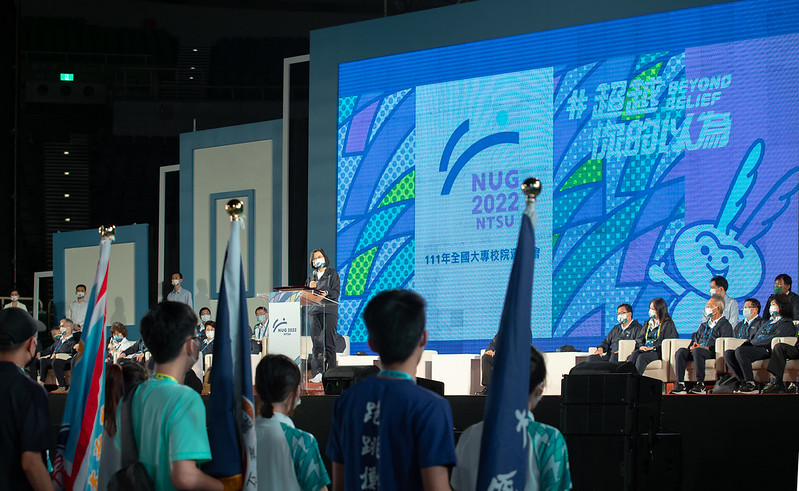 蔡總統表示,代表台灣出賽的頂尖選手,多半通過全大運的洗禮和鍛鍊,因此她也期待今年參與全大運的選手們,可以承先啟後,繼續挑戰自己紀錄,未來透過選拔與訓練,進一步代表台灣出賽。
