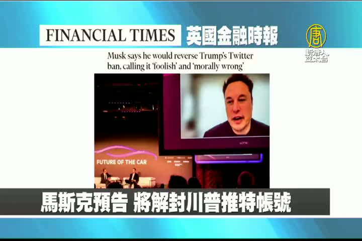 【新唐人亞太台 2022 年 05 月 11 日訊】接著是英國金融時報的報導:馬斯克表示,將撤銷對美國前總統川普推特賬號的封鎖,並說,推特先前永久停用川普帳號是不道德且糟糕的決定。