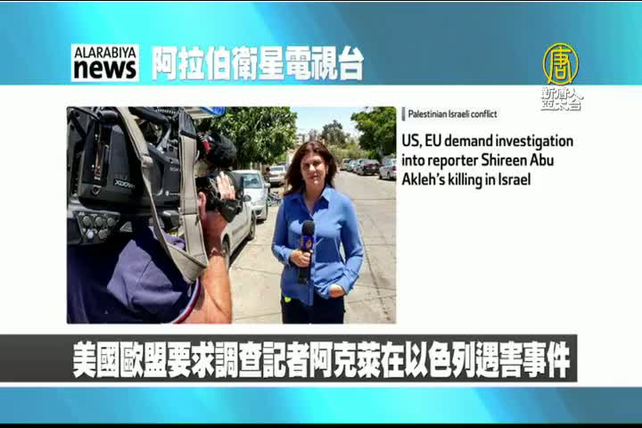 【新唐人亞太台 2022 年 05 月 12 日訊】最後來看到阿拉伯衛星電視台報導:資深半島電視台記者阿克萊在約旦河西岸城市哲寧的難民營報導時遭到槍殺,美國和歐盟譴責並要求獨立調查。