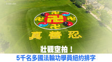 壯觀空拍!5千名多國法輪功學員紐約排字