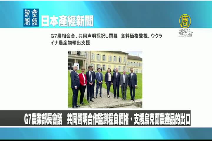 【新唐人亞太台 2022 年 05 月 16 日訊】來看到日本產經新聞報導:在德國舉行的G7農業部長會議在14日閉幕。他們發表共同聲明表示,同意合作監測糧價上漲趨勢,並共同支援烏克蘭農產品的生產及出口。