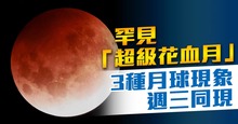罕見「超級花血月」 3種月球現象週三同現